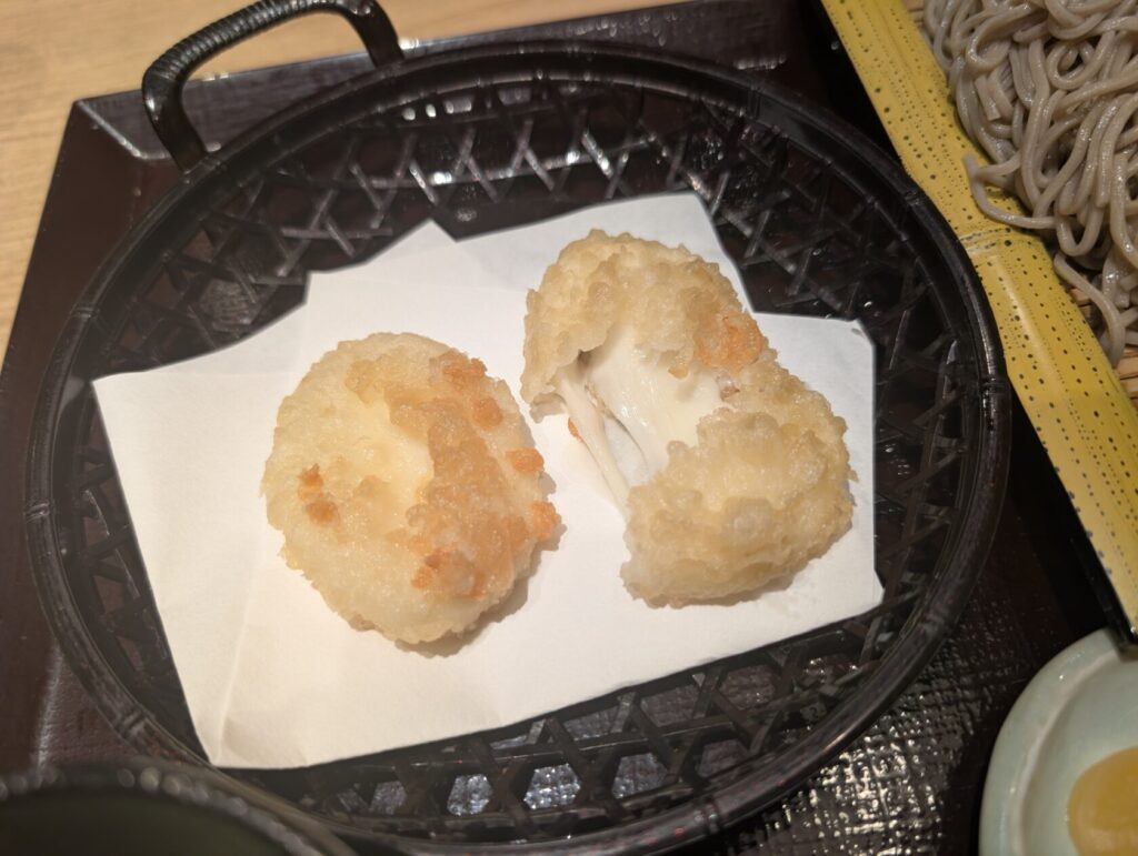 なんかお酒に合いそうでチーズ天ぷらも追加!ビヨーンと伸びるチーズ!