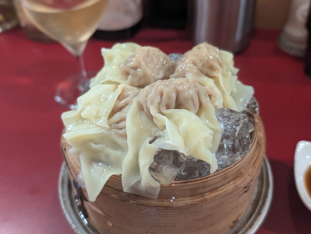 冷やしワンタン着弾、すごい!大量の氷でしっかりと冷えたワンタン!