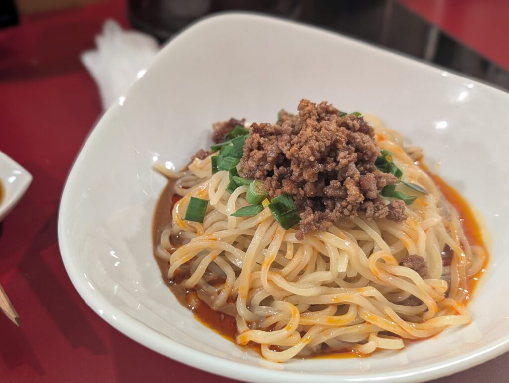 汁無し担々麺もすぐに着弾!しっかり混ぜてとのこと、ビビって辛さは控えめでオーダーしました